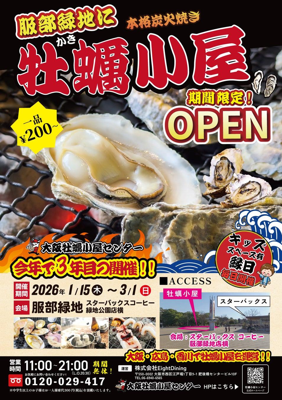 在大阪府丰中市的服部绿地公园,一家以合理价格提供炭烤海鲜的正宗移动牡蛎小屋,将连续第三年回归。
