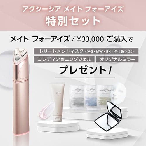 购买“AXXZIA Mate for Eyes”的顾客将获赠独家豪华套装,包括“AXXZIA Conditioning Gel”、一套 3 片人气面膜和 AXXZIA 原创镜子。