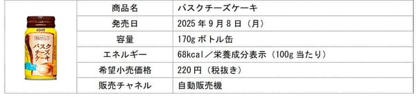一款新型巴斯克芝士蛋糕饮料将于2025年9月8日星期一在日本上市,推出业界首款“摇摇即饮罐装芝士蛋糕”。