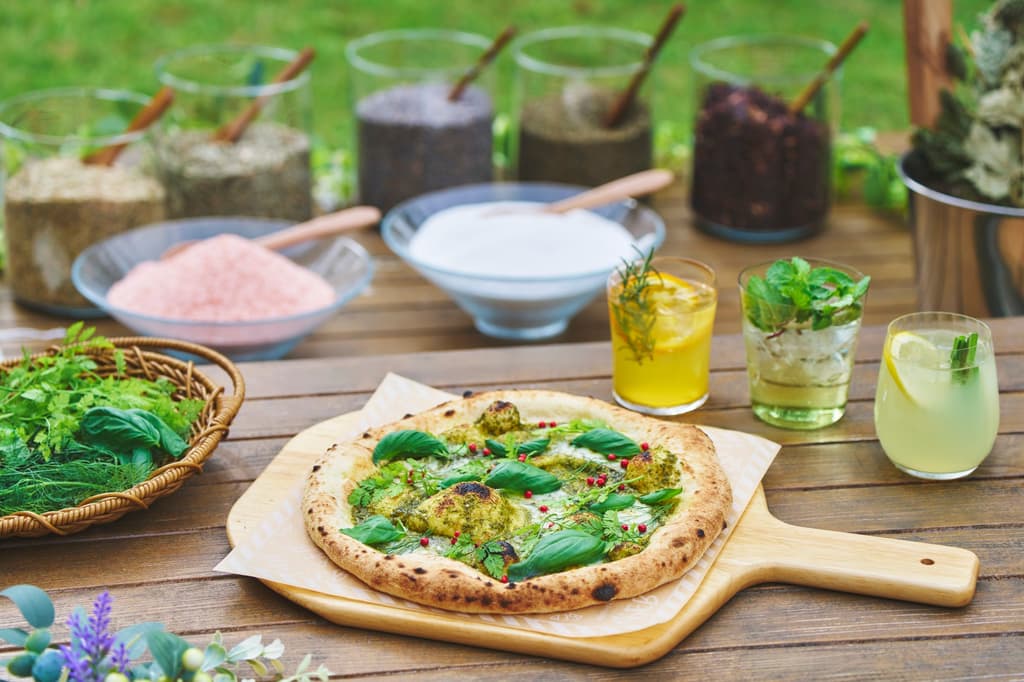 在宜人的氣候中,酒店提供以草本為特色的餐飲。菜單包括大量添加草本的披薩、清爽的草本酸酒和帶有草本風味的義式冰淇淋作為甜點。早餐時,賓客可以享用僅在此期間提供的芳香草本水。