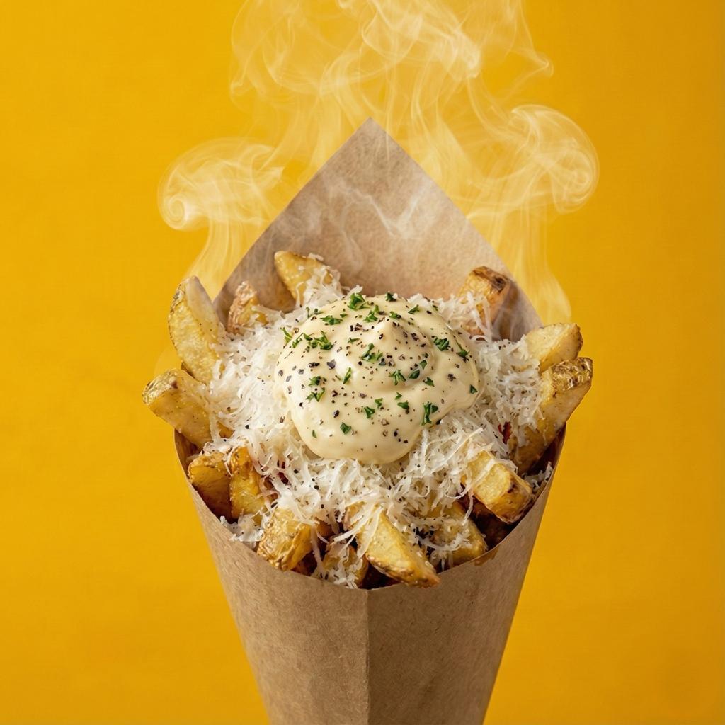 遵循正宗的比利时传统,他们采用在不同温度下用油进行二次油炸的工艺。 厚切土豆的表面变得非常酥脆,而内部则呈现出蓬松、新鲜蒸煮的质地。