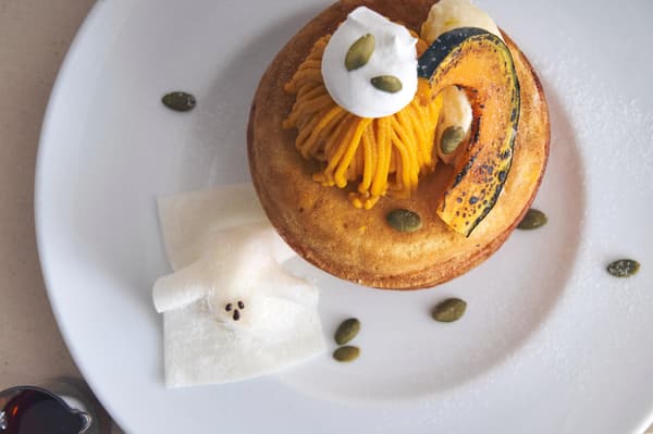 从 2025 年 10 月 1 日(周三)至 10 月 31 日(周五),<北海道南瓜枫糖奶油万圣节薄煎饼> 隆重登场。这款限时供应的菜品既有当季南瓜的浓郁甜味,又具有俏皮的万圣节风格。