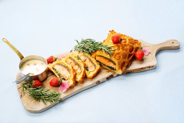 在甜点方面,客人可以享用草莓主题的创意美食,如鲜奶油草莓卷蛋糕、草莓蒙布朗和草莓挞,以及各种其他色彩缤纷的甜点。现场厨房还将草莓融入咸味领域,提供包括烤牛肉配草莓酱、以草莓和两种奶酪为特色的卡普雷塞沙拉以及三文鱼草莓酥皮等菜肴。