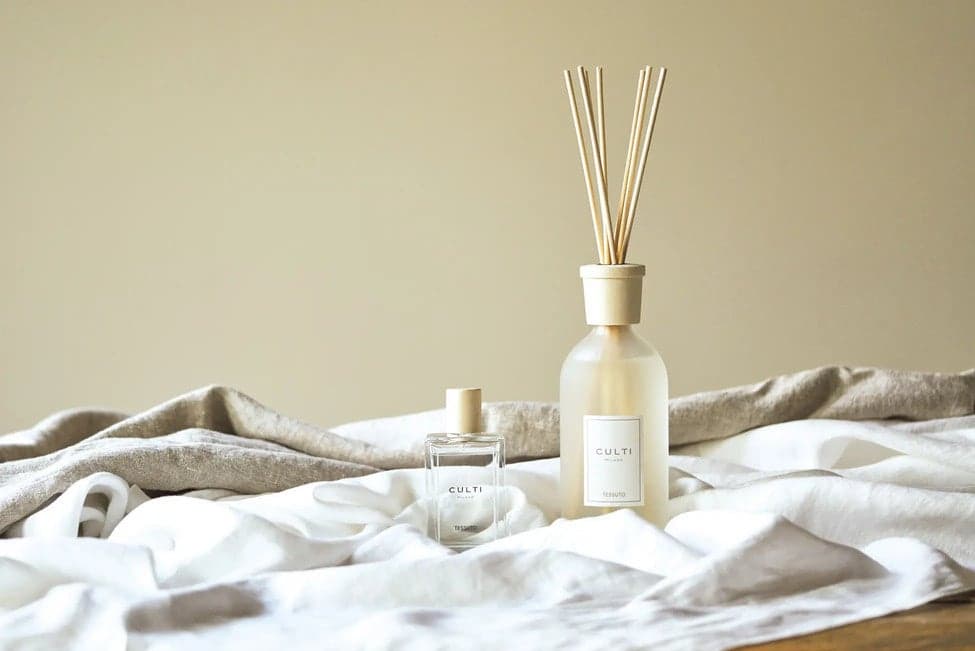 CULTI 的标志性木棒型室内扩香器有两种系列,瓶身设计不同:STILE 和 DECOR。含有从植物中提取的精油的液体被长长的藤条吸收并扩散到空气中。您可以享受在房间里体验奢华香氛的时光。