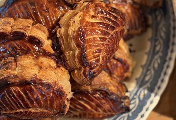 商店最受欢迎的商品:用法国发酵黄油制成的自制手工折叠酥皮,里面装满了国产红玉苹果蜜饯和红糖杏仁奶油。