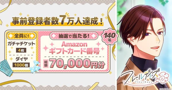 由于预注册用户达到 7 万人,因此增加了“4 张扭蛋券”,使初始登录奖励总额达到“10 张扭蛋券 + 1,000 免费钻石”,这些奖励可以从游戏中的礼物盒中领取。