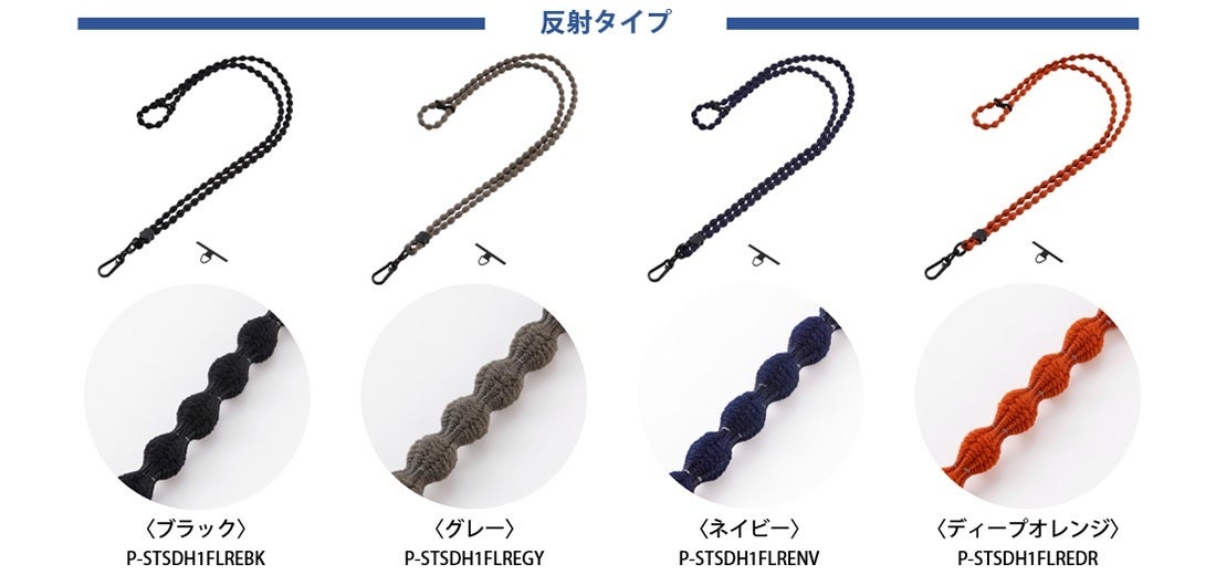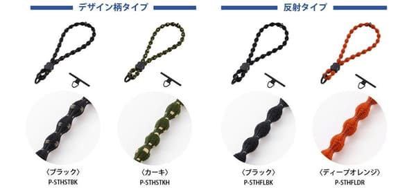 该系列包括手腕带和肩带,每种都有两种类型:“设计图案”类型,可搭配任何服装;以及“反光类型”,编织有反光线,可反射强光(如汽车前灯),从而在夜间郊游、户外活动和遛宠物时安全使用。出色的弹性使其可用于各种情况,例如电子支付、通过检票口和摄影,同时将智能手机放在手腕或肩膀上。