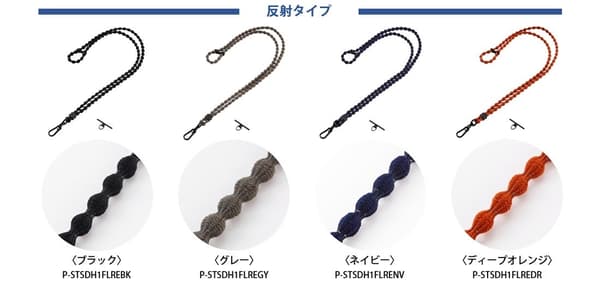 每种类型都有两种:手腕带和肩带,以及设计图案类型和使用反光线的反光类型。