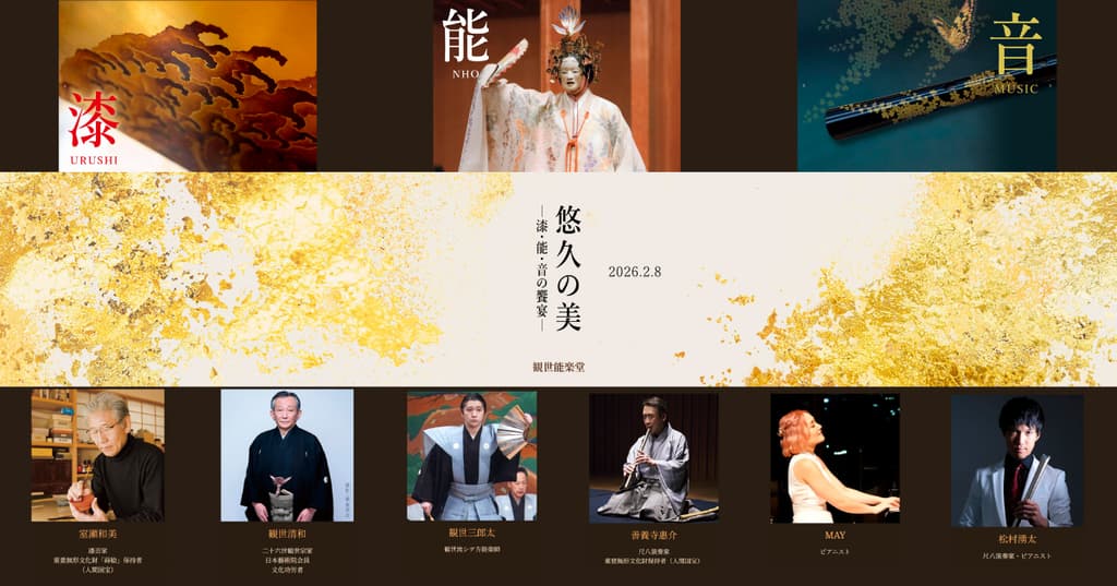 2026年2月8日(星期日),一场名为**“永恒之美——漆艺、能乐与音乐的颂歌”**的舞台表演将在观世能乐堂(GINZA SIX地下3层)举行。
