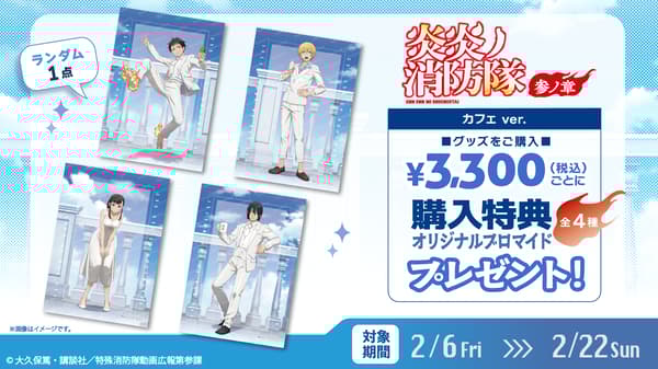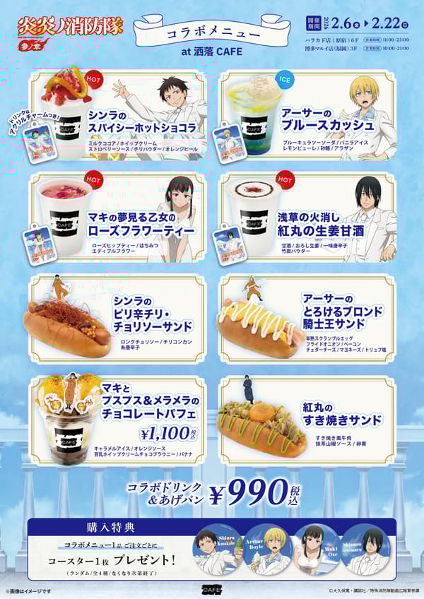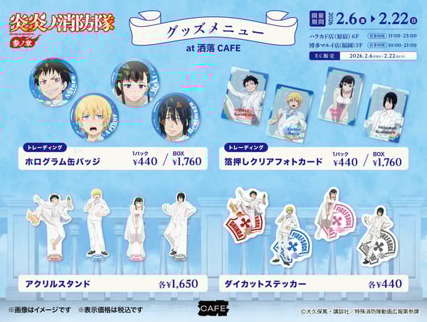 Anique Inc.(总部:东京都千代田区;CEO:葛西誉高)将举办联动咖啡厅活动,庆祝电视动画《炎炎消防队》第三季的播出,将于2026年2月6日(星期五)起在 Share CAFE Harakado 店和博多 Marui 店同时开业。