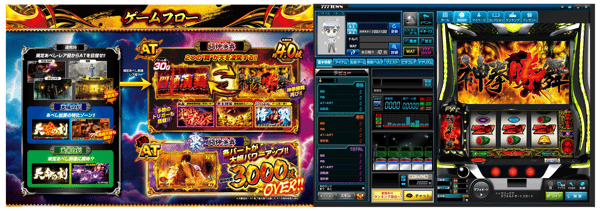 怀旧的“Abeshi”系统仍然存在,而净增加约4.0枚代币的“Battle演舞 (Toshin Enbu)”功能包括许多新的支付触发器,如“奥義 (Ougi)”、“拳王強襲 (Kenoh Kyoshu)”和“SP Battle”。上层AT“裏闘神演舞 (Ura Toshin Enbu)”预计支付约3,000枚代币。