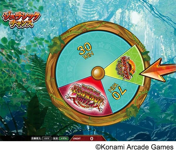通过将球放入“扭蛋蛋”并收集5个恐龙,玩家可以进入侏罗纪机会。轮盘旋转可以奖励彩票、侏罗纪模式或头奖机会条目。落在头奖机会上可以打开使用中央装置进行头奖彩票的路径。