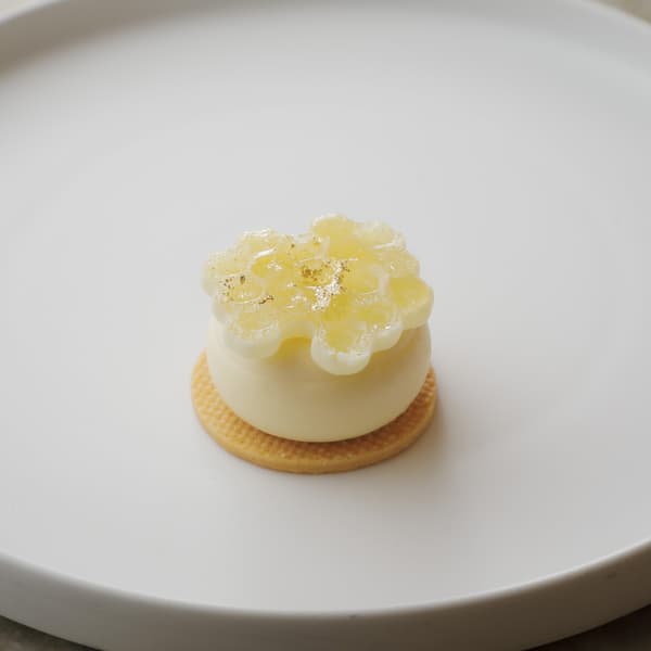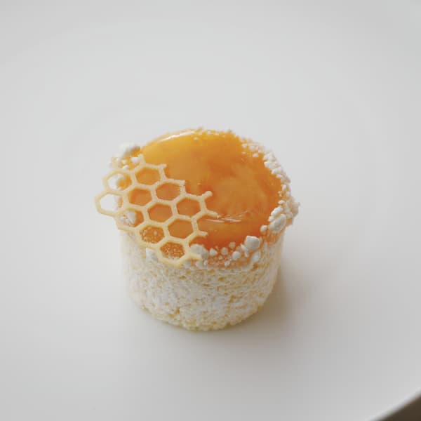 顶部饰有蜂窝状饼干,带来柑橘的明亮酸度和轻盈的质地,捕捉了春天的精髓。