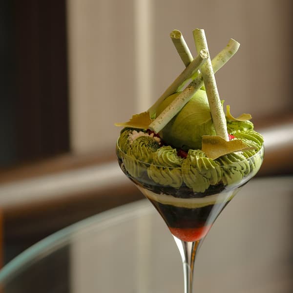The Lounge & Bar提供的抹茶芭菲将京都宁静的春天融入一杯之中。