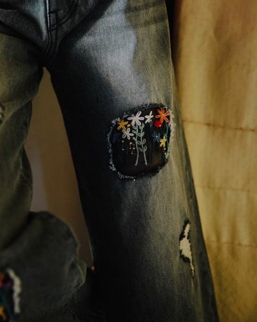 一款热门商品以新的黑色选项回归。这些牛仔裤源于一个虚构的故事,即“在最喜欢的带有破洞的旧牛仔布上自己绣花”,具有色彩鲜艳的花卉刺绣和珠子,增添了春天的快乐表情。这项劳动密集型工艺包括在加工后进行解构以应用刺绣。腰部可通过抽绳调节,使用厚实的 13 盎司牛仔布。