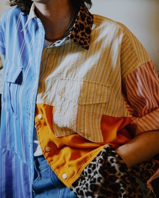 一款引人注目的拼布衬衫,结合了 5 到 6 种不同的图案。采用飘逸的合成面料制成,提供与 Freada 常用美学不同的清新外观。图案切换延伸至衣领和前襟,展现出对细节的细致关注。在牛仔工厂缝制,打造休闲风格,这种略微超大的廓形使其成为一件引人注目的单品。