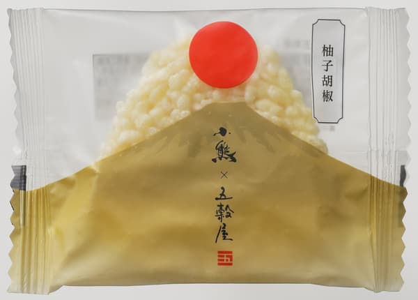為了與「小熊」的這次合作,選擇的主題是「柚子胡椒」,它曾在餐廳的白米飯上增色不少。以德島縣木頭柚子製成的木頭採摘柚子胡椒的清脆香味和宜人的辛辣味為基礎,融合了日本料理工匠特有的細膩感性和五穀屋獨特的穀物香氣。