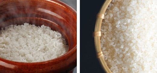山むすび的麵團首先要將糯米徹底浸泡一整天一夜,然後進行煮飯的過程。通過在高湯水中使用鰹魚高湯,高湯的鮮味和香氣輕柔地增強了米飯的甜味,創造出具有深度的味道。