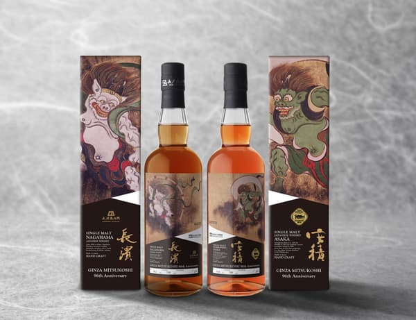 为纪念银座三越成立96周年,推出了两款单一麦芽日本威士忌,其标签上印有重要文化财产“风神雷神图屏风”(尾形光琳作品,东京国立博物馆藏)。