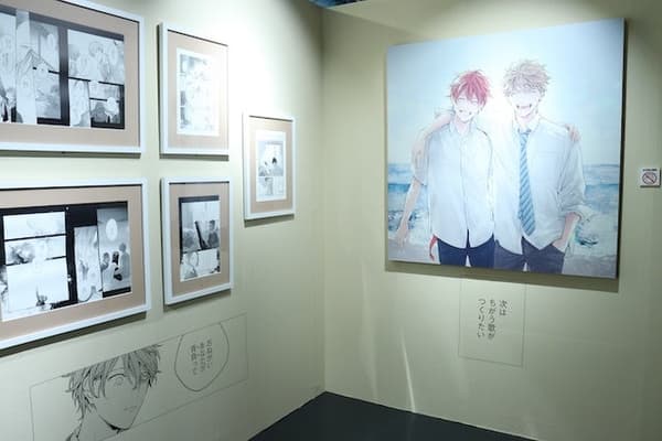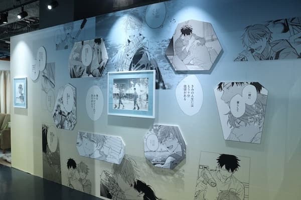穿过入口后,参观者会遇到再现的「那个楼梯」,真冬和立夏在学校相遇的地方。复制原稿和动画场景(包括电影)交替展示,创造了丰富的内容,让参观者可以同时欣赏漫画和动画。