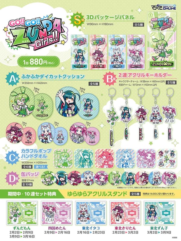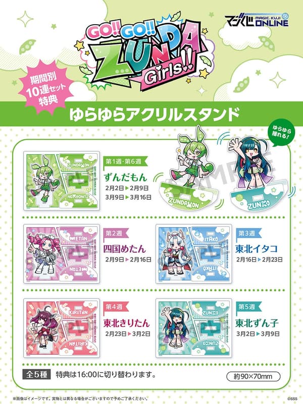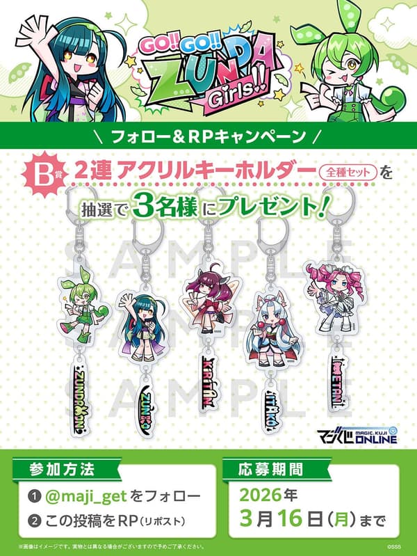MAGES. Inc.(东京都涩谷区;总裁:麻田诚)宣布,以东北 Zunko & Zundamon 项目中的角色为主题的“前进!!前进!!毛豆泥女孩!!在线抽奖活动”将于 2 月 2 日中午 12:00 在其 MAGIC Kuji ONLINE 平台(俗称 Maji Kuji ONLINE)上启动。本次抽奖活动包含以毛豆泥和其他受欢迎的角色为主题的全新插图商品。