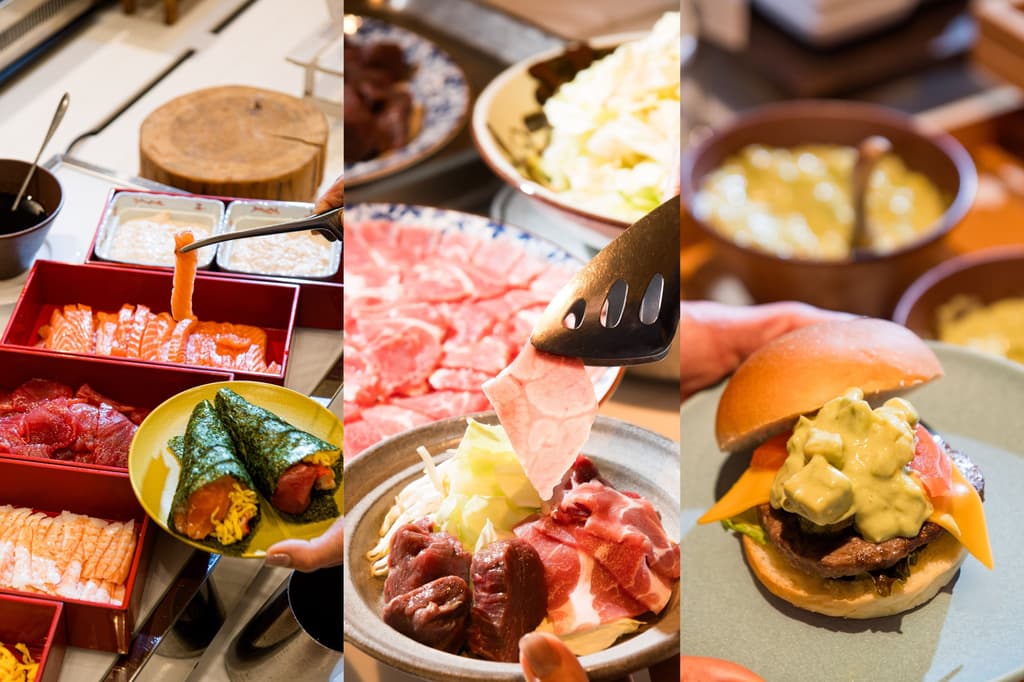 提供超过50种菜单项,包括新鲜沙拉、各种日式和西式菜肴以及甜点。客人可以通过选择金枪鱼和虾等食材来定制手卷寿司,用牛肉饼、奶酪和蔬菜在小面包上制作汉堡包,并享用在餐桌上烹制的热气腾腾的铁板烧烤肉。这些菜肴不仅美味,而且即使是相同的菜单项,不同的排列和食材组合也会产生不同的外观和风味,激发“我下次试试那个!”之类的评论,从而自然地引发对话。