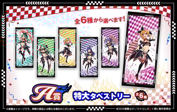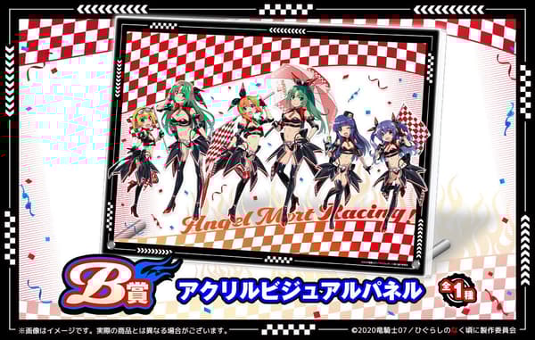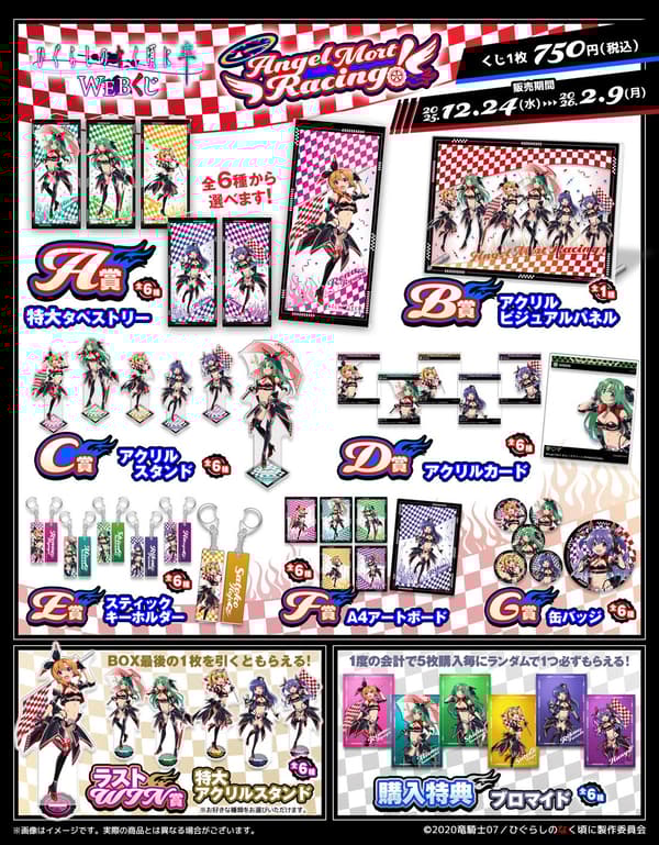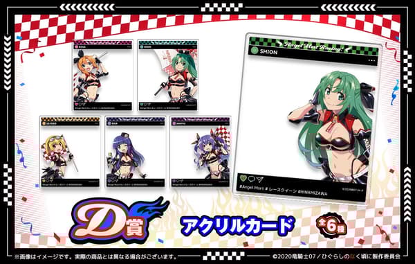 网络抽奖系列的第 10 弹以《寒蝉鸣泣之时卒》的商品为特色。这次新的抽奖活动以 Angel Mort 为灵感,展示了“赛车女郎”主题,所有六个角色的全新插图均由角色设计师渡边明夫绘制。