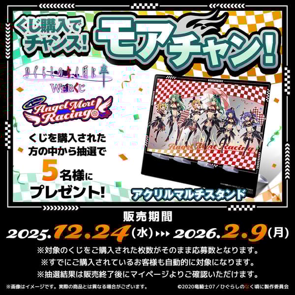 D-techno Co., Ltd.(总部:东京都港区;总裁:市原高明)于 2025 年 12 月 24 日(星期三)推出了“寒蝉鸣泣之时卒网络抽奖‘Angel Mort Racing!’”。