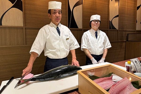 在北陆美食节的每个星期六,客人们都可以亲眼目睹令人印象深刻的现场表演,厨师们会在他们眼前熟练地宰杀来自北陆的优质鰤鱼。这种脂肪丰富、大理石纹理完美的鰤鱼在这个季节达到顶峰,提供卓越的风味和质地。