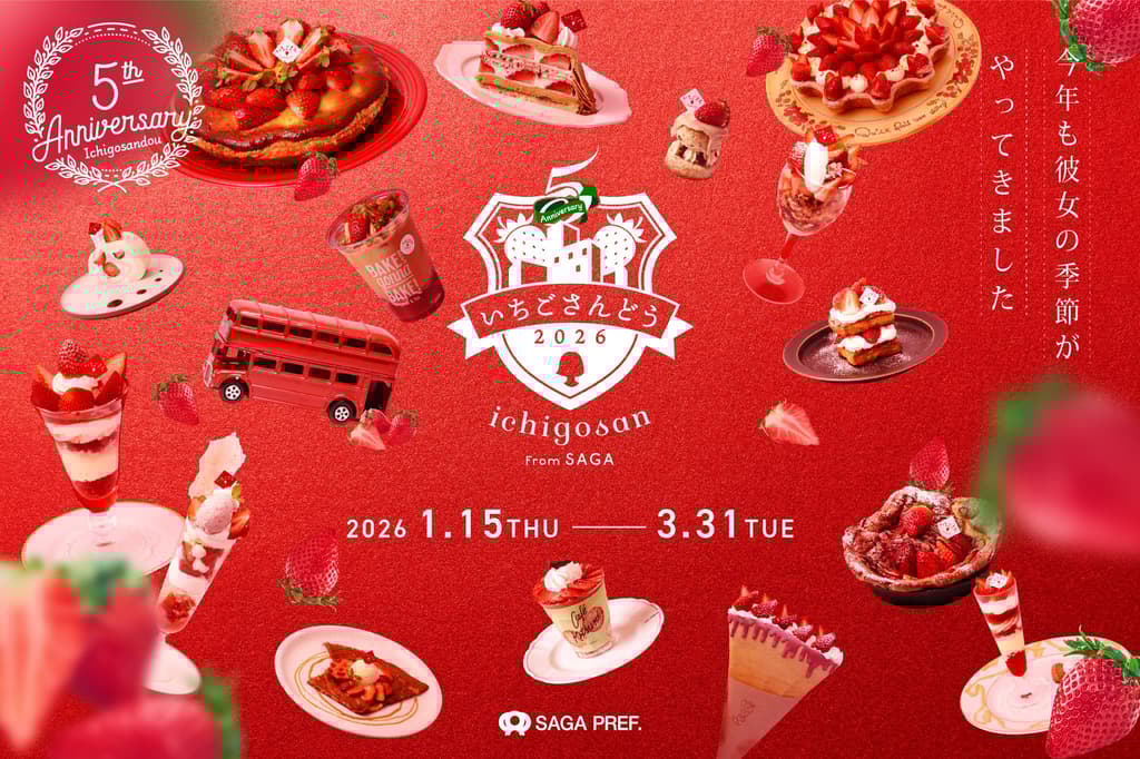 佐贺县即将启动“草莓小姐×表参道甜点合作2026”,这是佐贺县高级草莓品牌“草莓小姐”与表参道12家咖啡馆和餐厅之间的合作。该活动从2026年1月15日(星期四)——“草莓日”——开始,持续约两个月,至2026年3月31日(星期二)结束,参与店铺将提供独家“草莓小姐”菜单。
