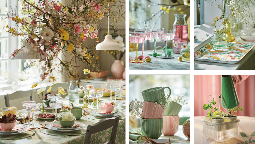 春季庆祝系列以焕新家居的物品为特色,包括餐桌布置、房间装饰,以及与家人和朋友共度的美好时光。三个系列表达了春季的氛围:SMÖRFISK 具有春季般的设计,TJÄRLEK 用于庆祝复活节,DOFTRIPS 以春季焕新为主题,所有这些都营造出令人愉悦的春季氛围。