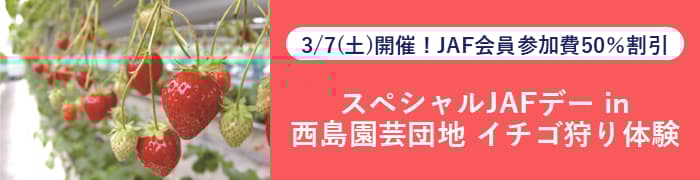 JAF(日本自動車連盟)高知支部(支部长:佐藤清三)正在招募参加者,参加于2026年3月7日(星期六)在西岛园(高知县南国市秦枝600)举办的“西岛园特别JAF日 - 草莓采摘体验”活动。*需要预约。