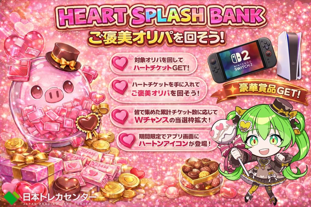 日本集换卡牌中心有限公司(总部:东京,CEO:大山敏弘)宣布启动“HEART SPLASH BANK”活动,这是一个限时用户参与型活动,将于2026年2月9日(星期一)下午3:00开始,以庆祝情人节。
