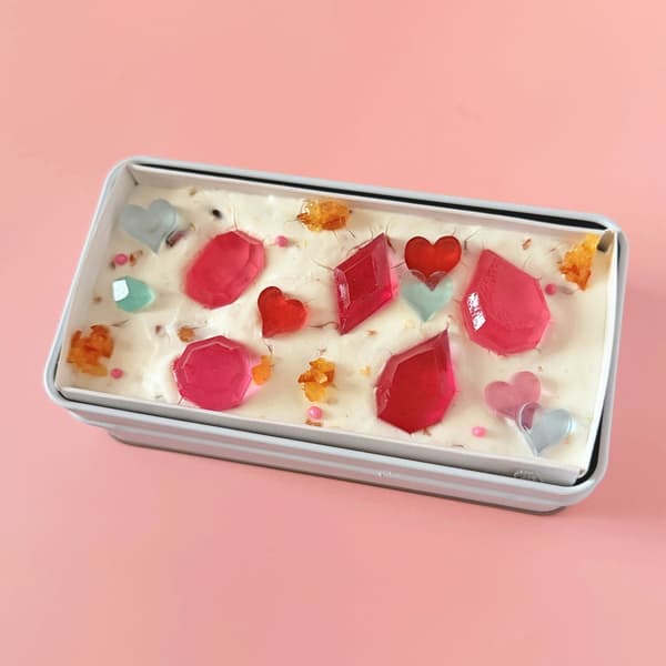 当您打开用丝带递送的原创罐子时,工匠们逐一手工切割的新鲜琥珀糖闪闪发光,营造出像珠宝盒一样华丽的视觉效果。宝石部分根据颜色具有不同的口味:桃子椰子、覆盆子、黑醋栗和蓝莓。它不仅在视觉上具有吸引力,而且在您食用时,口味的变化也是其魅力的一部分。