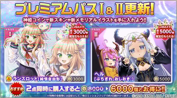 通过游玩游戏并完成指定任务,高级通行证Lv将随之提升,并根据当前等级解锁更多奖励。现可使用神姬硬币购买的高级通行证I和II,新增召唤兽皮肤及纪念插画作为额外奖励。