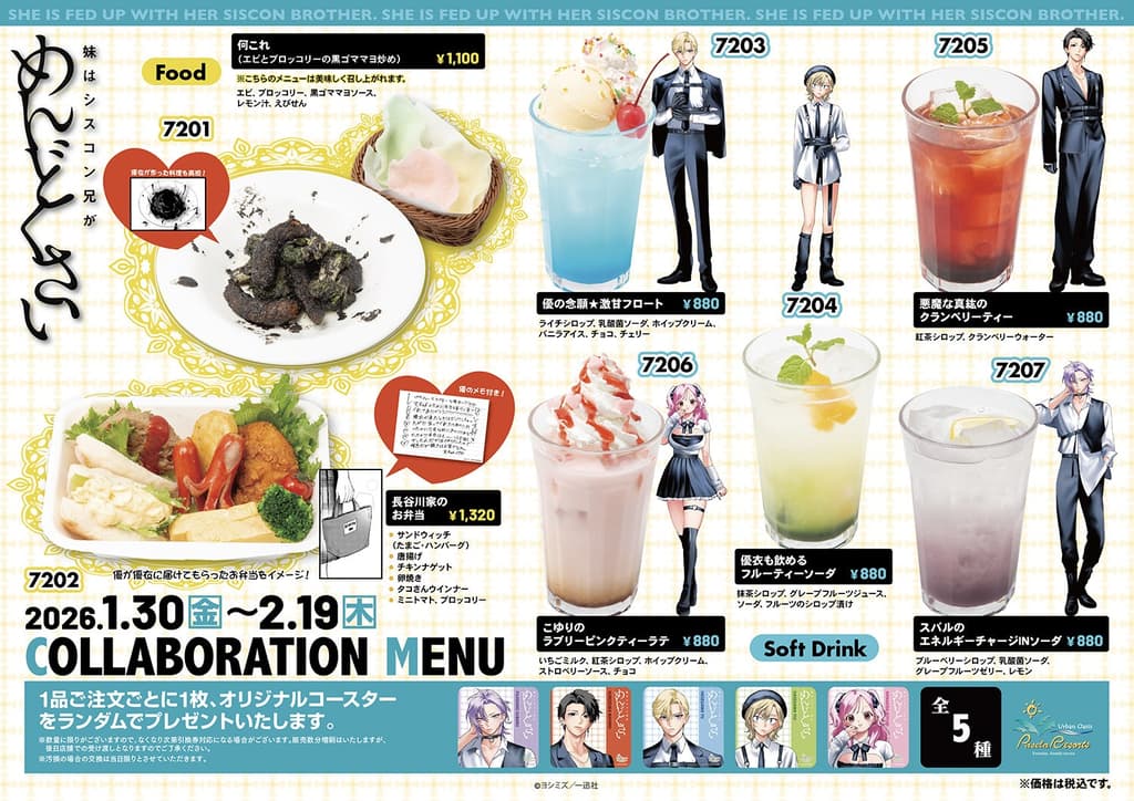 每订购一份合作菜单上的商品,您将获得一个由作者吉水新绘制插图的原创杯垫。还将提供使用吉水新绘制插图的独家商品供您购买。