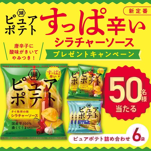 2025年10月,湖池屋推出了限定版"PURE POTATO 鬼之焰 — 是拉差酱",为品牌吸引了新客群,并在浓郁辛辣口味爱好者中赢得高度好评。大量希望将该口味转为常规产品的请求纷至沓来,促使湖池屋正式将其纳入产品阵容。