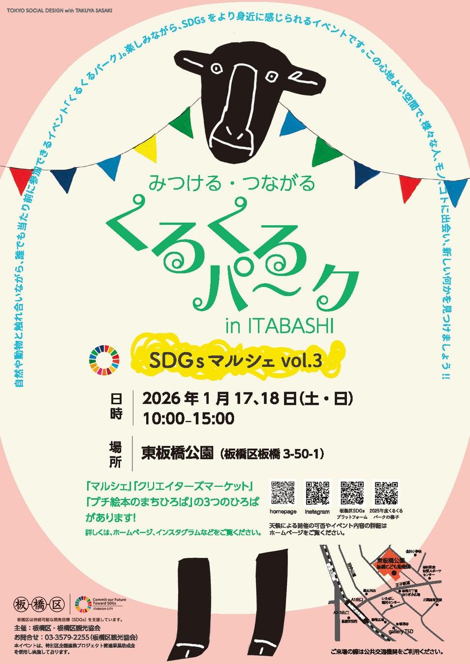 「板橋区 Kurukuru 公園 - SDGs Marché vol.3」活動將創造一個舒適的空間,讓參與者可以發現並聯繫各種人、物品和概念,同時獲得新的見解並了解 SDGs。