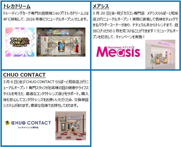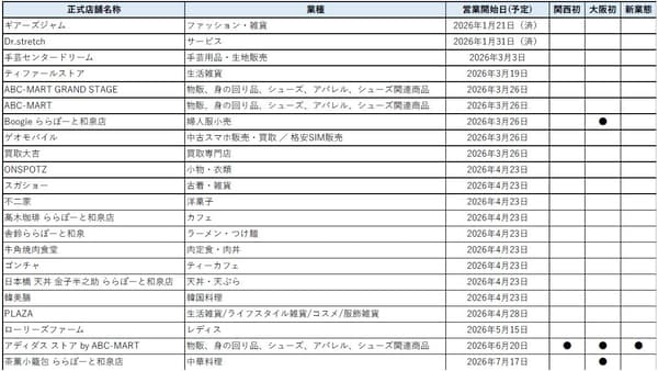 位于大阪府和泉市的三井购物公园啦啦宝都和泉店,自2014年10月开业以来,正迎来第二次大型翻新。从2026年3月26日(星期四)开始,包括一家首次亮相关西的店铺和两家首次亮相大阪的店铺在内的30家新店和翻新店将分阶段开业。