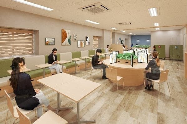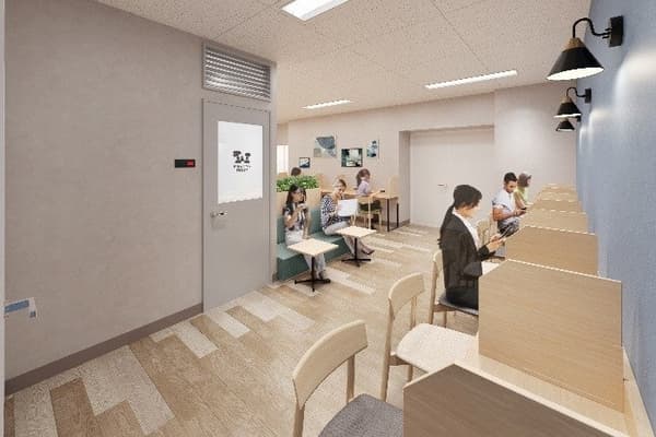 入口区域以波光粼粼的光线和自然为主题,为用餐提供诱人的氛围。中央区域新增了包厢式座位,而美食广场后方的“Komorabi Garden”区域将设有一个显示儿童动画节目的显示器——对于有小孩的家庭来说,这是一个贴心的设计。