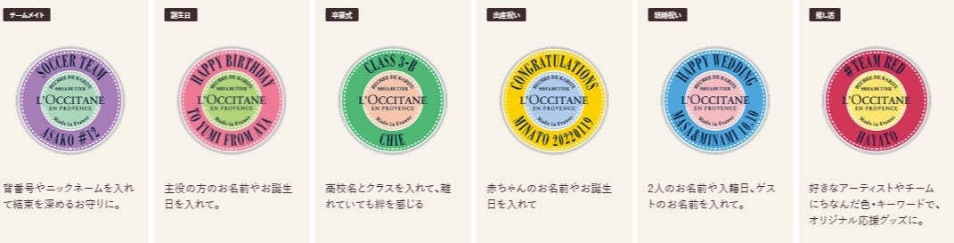 “我的乳木果”和“我的护手霜”是日本独家服务,允许顾客定制 L'OCCITANE 的标志性产品——“乳木果滋养有机润肤霜”和“乳木果滋养润手霜”——并选择颜色和个性化信息。这些独一无二的乳木果礼品非常适合生日、周年纪念日、毕业典礼和新生儿礼等特殊时刻。
