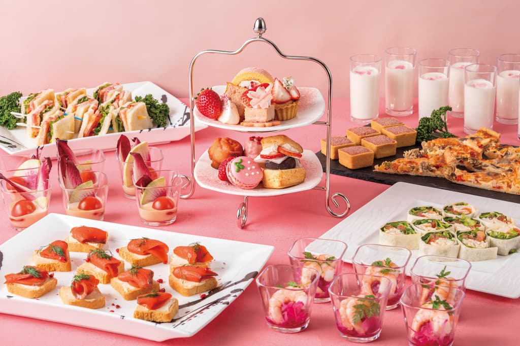 这种形式将两种体验合二为一:为每位客人提供的个人甜点架,以及可以自由享用各种菜肴的美味自助餐。“Pétale de Fraise”在法语中意为“草莓花瓣”,活动以春季草莓为中心,并在整个菜单中融入了淡淡的樱花风味。