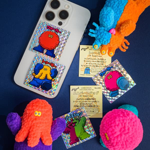藤崎的"Mall Alien"角色以其缤纷多彩、毛茸茸的长毛外衣(由モール材料,即雪尼尔/毛绒铁丝制成)以及从中露出的呆萌大眼睛而广为人知。"Mall Mutant"角色则是从Mall Alien身上脱落的モール丝线发生突变后诞生的彩色怪兽,它们各自拥有独特能力,通过互补彼此弱点而共同生活。