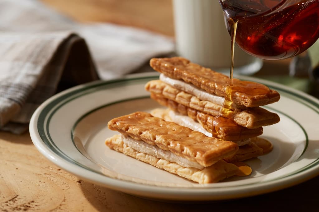 这款美食的特色是酥脆的馅饼皮夹着枫糖制成的枫糖奶油。枫糖奶油的优雅甜味和芳香酥脆的馅饼的结合,创造出精致的风味。
