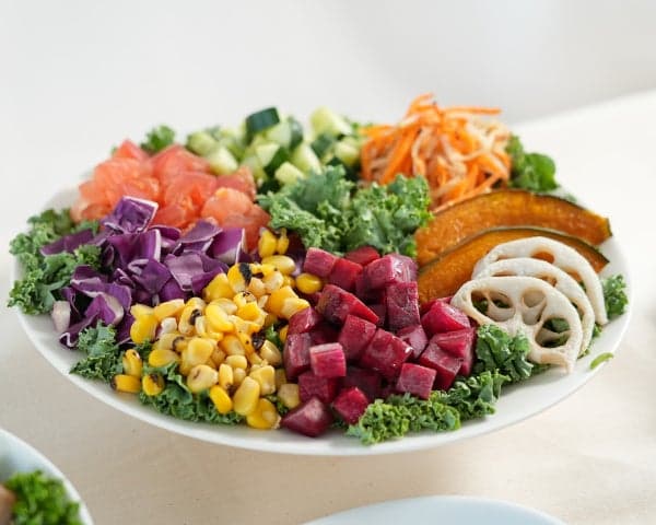 色彩鲜艳、丰盛的沙拉,以该品牌自家农场的10种西式蔬菜为特色。原创的日式海藻酱增添了独特的点睛之笔。