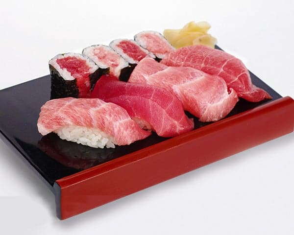 在自然环境中饲养的金枪鱼,以握寿司和寿司卷的形式呈现,份量十足。