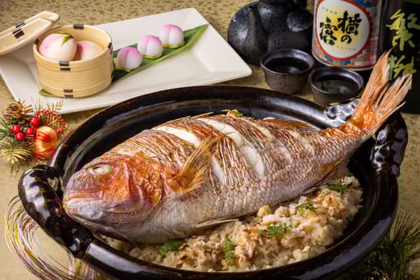鲷鱼饭用当地捕获的鲷鱼奢华地制成,味道浓郁,令人满足,鱼的鲜味渗透到每一粒米饭中。由于鲷鱼与“めでたい”(吉祥/喜庆)相关联,这道菜非常适合祈福。