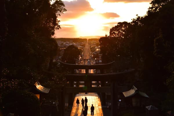 “光之道”每年仅在2月下旬和10月下旬的约一周时间内出现在宫地岳神社。当玄界滩上的夕阳照亮神社通往大海的笔直道路时,就会出现这种现象,形成所谓的“光之道”。每年,从2月中旬开始会举办为期约两周的“光之道日落节”,吸引着来自全国各地的游客前来见证这一神秘而强大的景象。宫地岳神社也被尊为“克服一切挑战并带来好运的神社”,吸引着来自日本各地的人们前来寻求商业繁荣和好运。此计划包括在入住当晚参拜神社,让宾客通过神圣的景象和神社的力量重焕内在精神。从1月下旬开始,早开的寒绯樱(深红色樱花)开始在神社境内绽放,带来早春的气息。