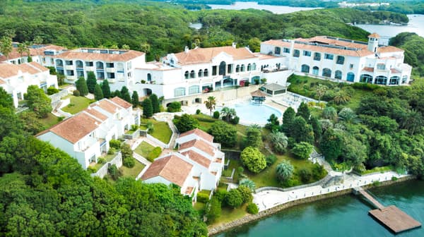 南欧风格的建筑面向阿戈湾,所有客房均设有露台,营造出让人联想到访问外国度假胜地的氛围。酒店设有两间餐厅,供应日本料理和法国料理,客人可以享用全套套餐,包括伊势龙虾、鲍鱼、松阪牛肉以及来自伊势志摩地区的其他优质食材。