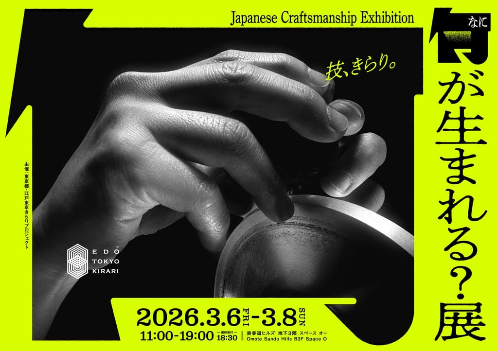 東京都は、江戸東京地域の伝統工芸と職人技を称える展覧会を開催します。2026年3月6日から8日まで、「何が生まれる?展:日本の職人技展」(What Will Be Born? Exhibition)が表参道ヒルズで開催され、東京の文化的宝物を見て、体験し、購入する機会を来場者に提供します。